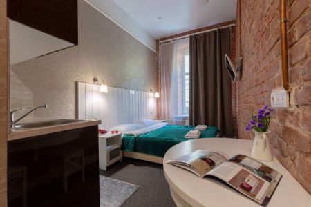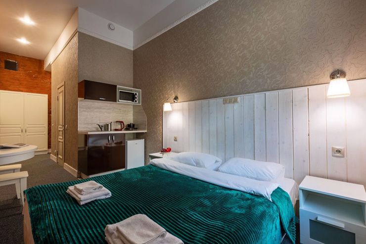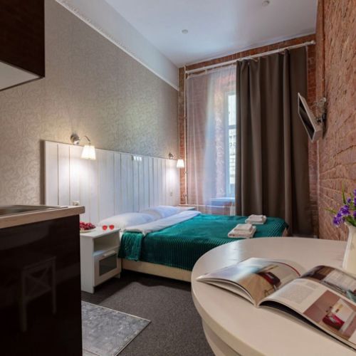 Отель расположен в историческом четырехэтажном здании на тихой Колокольной улице. В распоряжении гостей просторные апартаменты со всеми необходимыми удобствами. В номерах – просторные мягкие кровати, ЖК-телевизор, кондиционер, мини-кухня с электроплитой, в санузле – душ и косметические принадлежности для гостей.